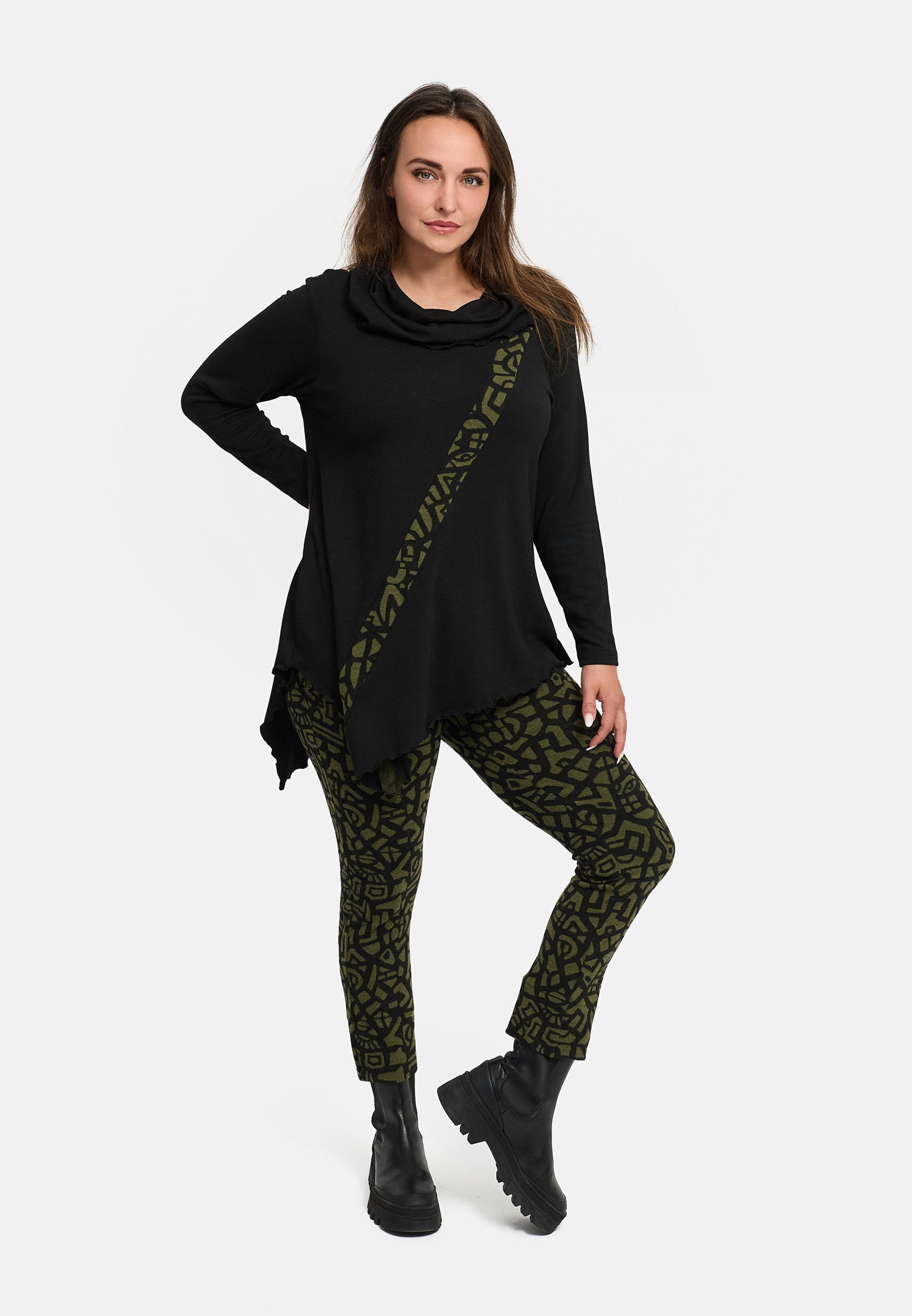 'Seriva' tunika – A-linja, jossa on kauluri ja vinopaneeli